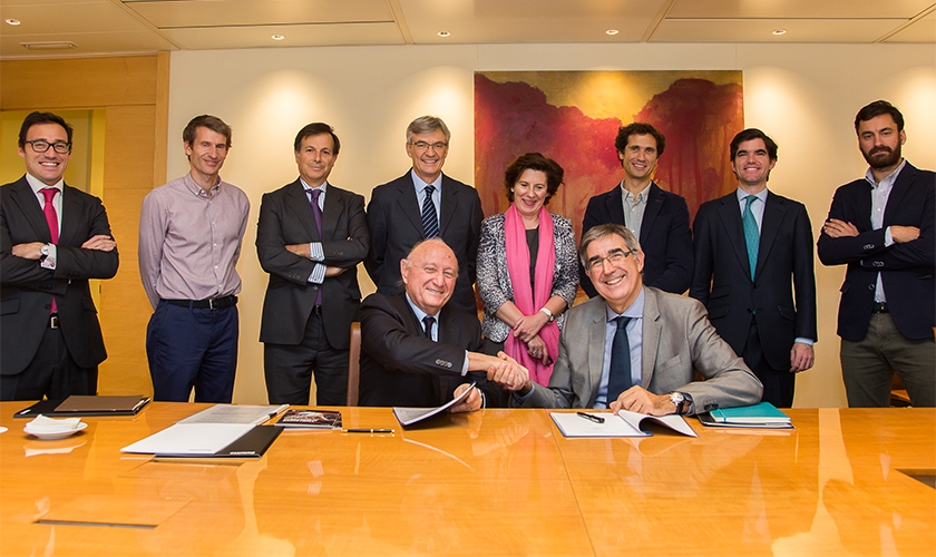 D. Jordi Bertomeu, Presidente y CEO de Euroleague Basketball, y D. Alberto López Ribé, Presidente de la FBC, llevaron a cabo la firma del acuerdo, que se hizo coincidir con la reunión semestral del Consejo Asesor de la FBC, al que se ha incorporado Jordi Bertomeu. Todos los miembros del Consejo, que tiene como objetivo, desde la experiencia y visión de sus componentes, ayudar a promover los valores de la Fundación y poder llevar a cabo sus objetivos, posaron encantados para la foto. De izquierda a derecha; Jorge Domínguez, socio de Deloitte; Pablo Martínez Arroyo, Director General FBC; Jaime González Lasso, Director Banca Privada de Bankia. Fernando Ruiz, Presidente de Deloitte Spain (Presidente y anfitrión del Consejo Asesor); Helena Herrero, Presidenta de HP España; Jaime González, Director General del CSD; Borja Pascual, Consejero de Grupo Calidad Pascual y Álvaro Herranz, Director de Comunicación FBC. También forman parte del Consejo Asesor, Jesús Arroyo, Director General de Comunicación de Fundación Bancaria La Caixa; María Victoria Cabezas, Secretaria General del COE, y Pablo Berni, Director General Comercial de Orange, que disculparon su ausencia por problemas de agenda.